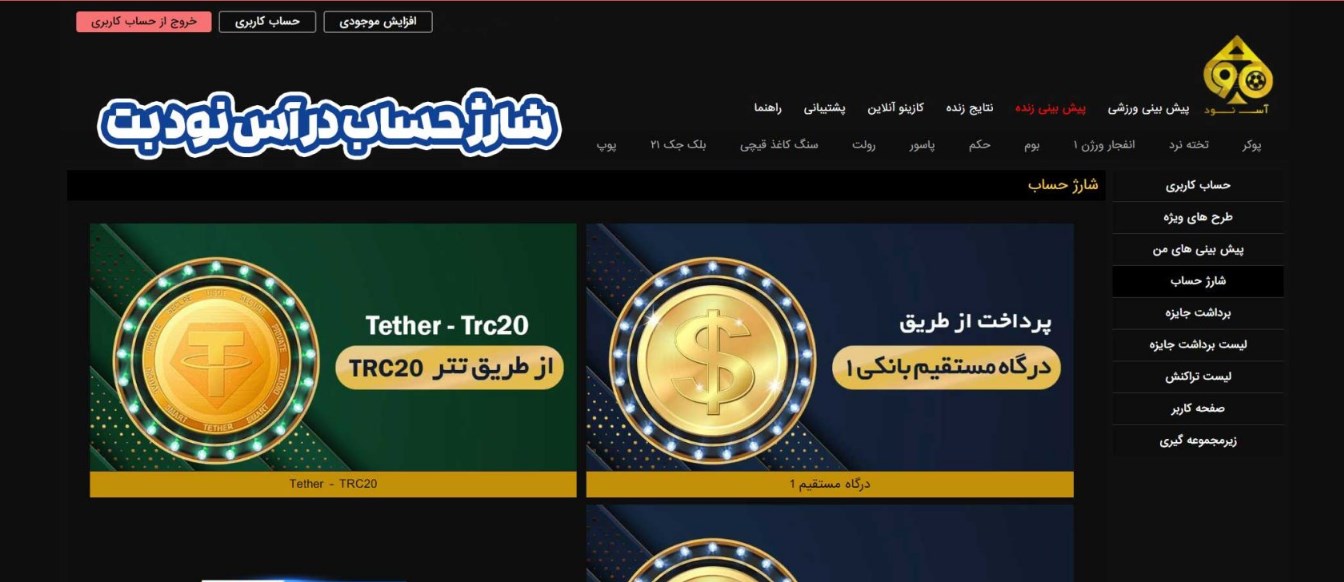 چه روش هایی برای شارژ حساب در آس نود بت وجود دارد؟