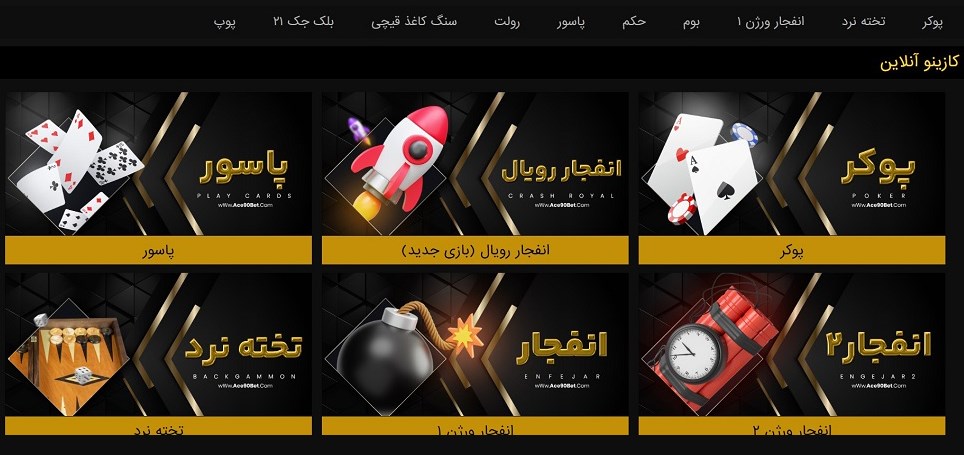 در ادامه لیست بازی های کازینو سایت آس نود بت را مشاهده می کنید که هر کدام ویژگی ها و جذابیت خاص خود را دارند: