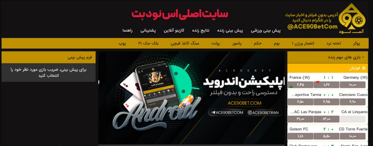 در سایت آس 90 بت کاربران می توانند در بخش پیش بینی ورزشی روی مسابقات مختلف فوتبال، بسکتبال، تنیس و سایر رشته ها شرط بندی کنند و همچنین از بازی های کازینویی مانند انفجار، پوکر، رولت و اسلات لذت ببرند. پشتیبانی مناسب، بونوس های متنوع و سرعت بالای سایت از دیگر ویژگی های مهم این مجموعه است. آس نود بت که با نام های آس ۹۰ بت و Ace90Bet نیز شناخته می شود، گزینه ای مناسب برای افرادی است که به دنبال یک سایت شرط بندی کامل با امکانات متنوع و محیطی قابل اعتماد هستند.